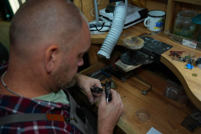 Андрій під час роботи над прикрасами. Суспільне Запоріжжя