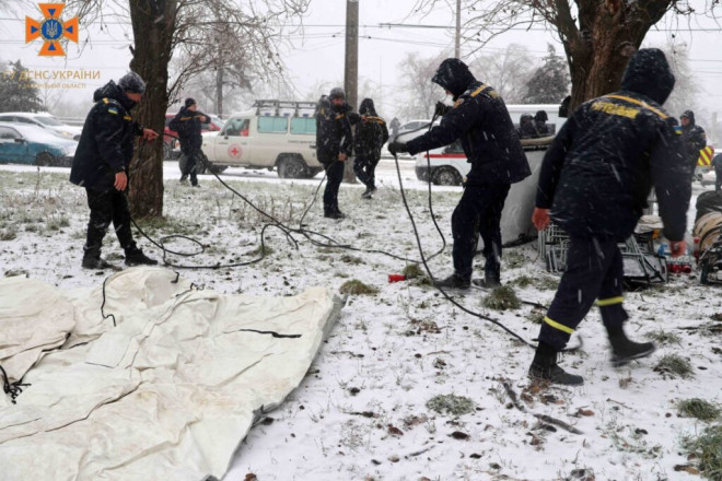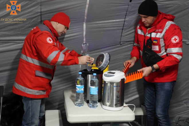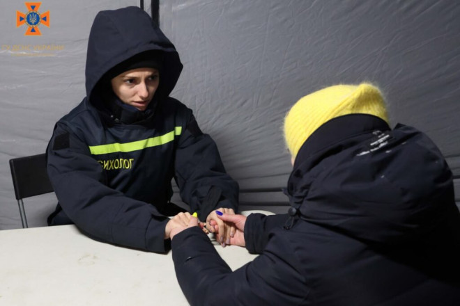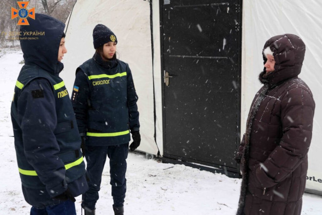 «В одному із місць рятувальники розгорнули додатковий мобільний пункт обігріву, де жителі можуть підзарядити мобільні телефони та обігрітися. Волонтери Товариства Червоного Хреста забезпечують гаряче харчування та чай. На місці працюють психологи ДСНС та Червоного Хреста, які надають допомогу постраждалим у кризовій ситуації людям», — повідомляють рятувальники.