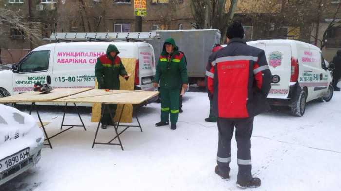 На місці працюють фахівці аварійно-рятувальної служби, «Запоріжремсервісу» і «Запоріжміськсвітла» — закривають вікна листами OSB та ремонтують покрівлі.