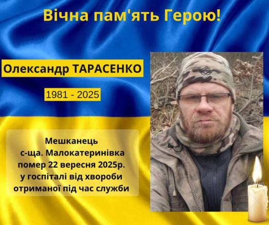 1 жовтня Кушугумська громада Запорізької області провела в останню путь свого захисника — жителя селища Малокатеринівка Олександра Тарасенка.