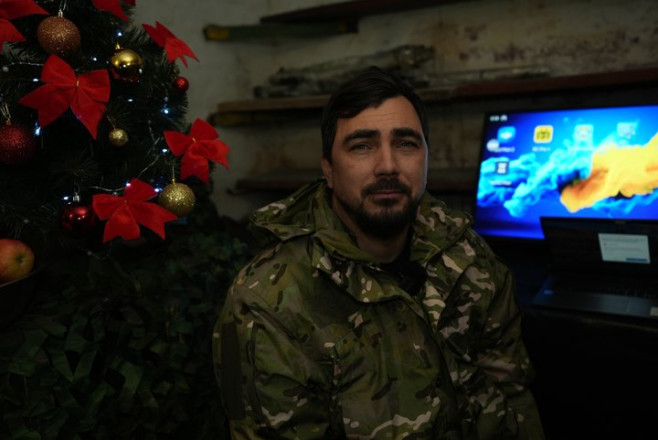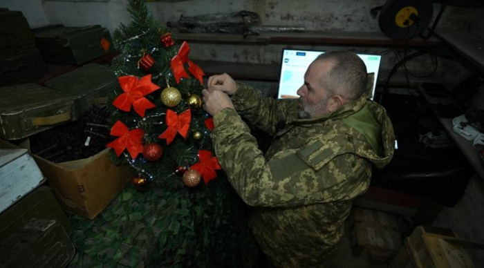 Уже втретє зустрічатиме Новий рік на фронті військовослужбовець 128-ї окремої важкої механізованої бригади “Дике поле” Анатолій. Чоловік каже: святкового настрою немає, та ялинку встановили, бо вона нагадує про рідних і мирні часи: