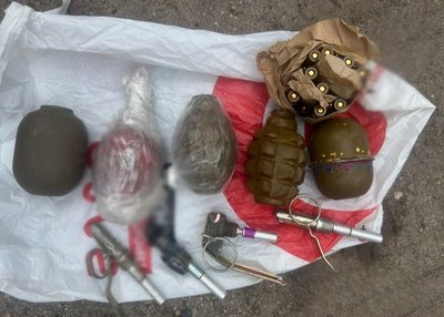 Вилучені гранати та набої, які, за даними поліції, жителька Запоріжжя незаконно збувала клієнтам. ГУ Національної поліції Запорізької області