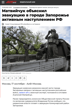 Російські державні ЗМІ поширюють дезінформацію, стверджуючи, що в Запоріжжі нібито оголошено евакуацію південної частини міста через «наступ РФ».
