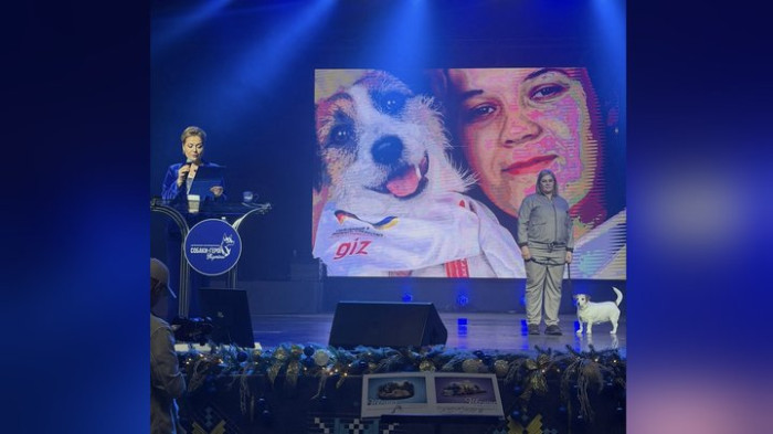 Берта з власницею на нагородженні. Facebook/Галина Шевченко