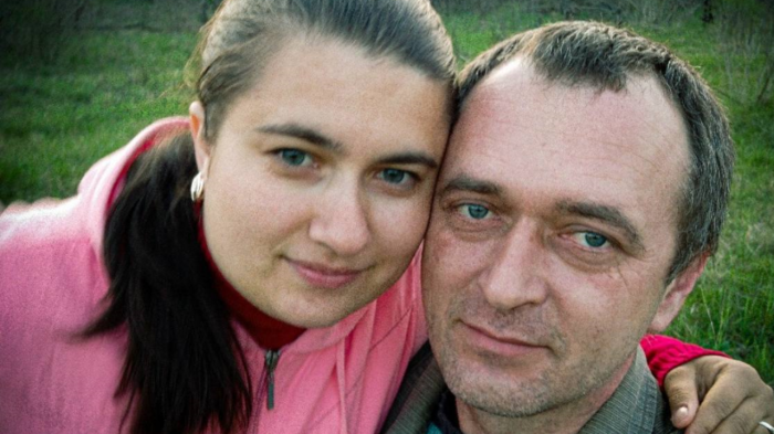 Віталій з дружиною. Особистий архів В.Хвостика"В п'ятницю збиралася, її на роботу взяли якраз. Вона ще прийшла така весела, що там зарплату пообіцяли хорошу. Не дожили ми, до п'ятниці….Комусь помішали, значить".