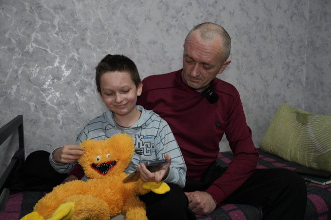Віталій з сином. Суспільне Запоріжжя"Мене сестра двоюрідна кличе на Західну. Весь час гукала, гукає, каже: "Помістимся". Може сюди потім вернемся, як буде куди, а може десь. Ну, Україна ще ж велика".