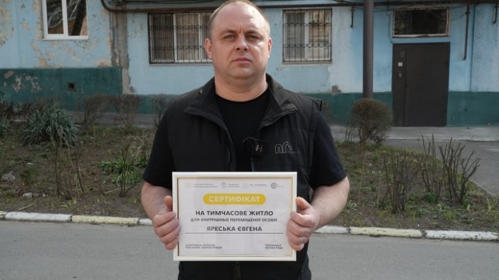 Євген Яресько із сертифікатом на тимчасове житло у Запоріжжі. Суспільне Запоріжжя