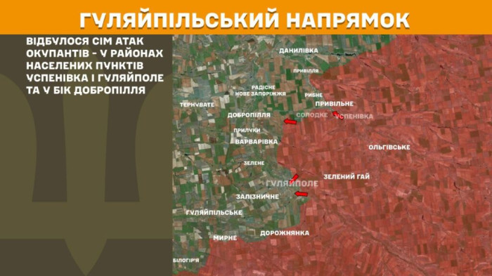 На Гуляйпільському напрямку відбулося сім атак окупантів у районах населених пунктів Успенівка і Гуляйполе та у бік Добропілля.