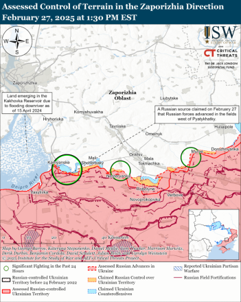 27 лютого російські війська продовжували наступальні операції в Запорізькій області, але жодного підтвердженого просування не здійснили.