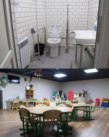 В укриттях навчальних закладів облаштували санітарні кімнати, навчальні зони та місця для відпочинку.