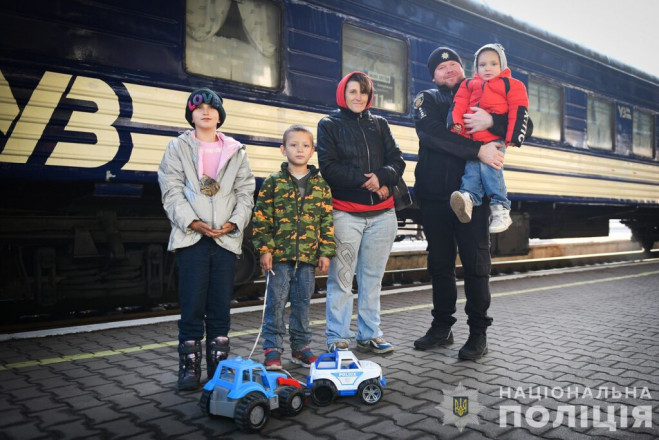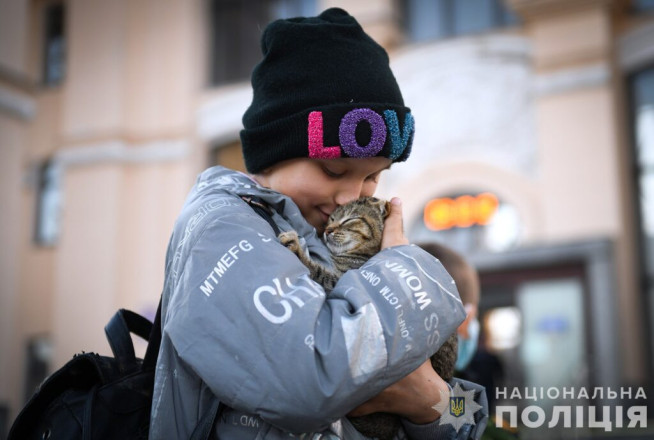 Спочатку на поліцейському авто жінка, її троє дітей та їхній кіт дісталися до Запоріжжя, а потім евакуаційним потягом вирушили до Львівщини.