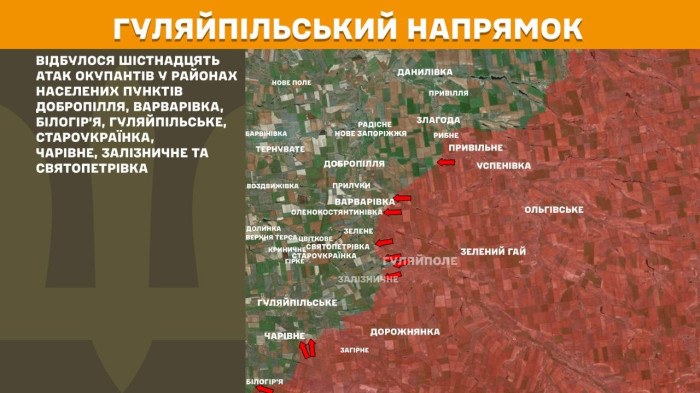 Раніше Суспільне повідомляло, що Сили оборони України відбили 18 атак на Гуляйпільському напрямку.