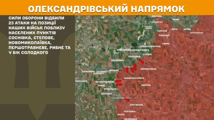 На Олександрівському напрямку Сили оборони відбили 23 атаки: