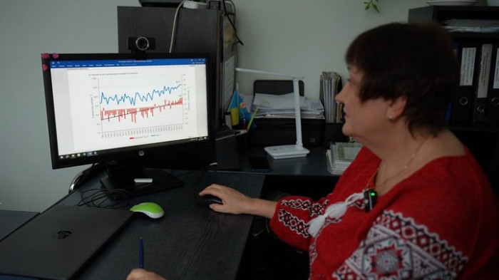 Тетяна Сорокіна демонструє прогноз від Українського гідрометеорологічного центру на січень. Суспільне Запоріжжя