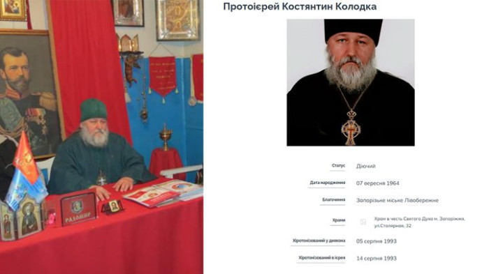 За інформацією з власних джерел Суспільного у правоохоронних органах, йдеться про Костянтина Колодку — протоієрея у Запорізькій єпархії УПЦ МП та одного із засновників ГО "Союз православний "Радомир", яка з'явилася у 2015 році.