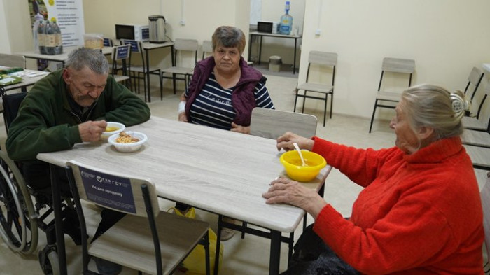 Люди обідають у Транзитному інклюзивному центрі тимчасового проживання. Суспільне Запоріжжя