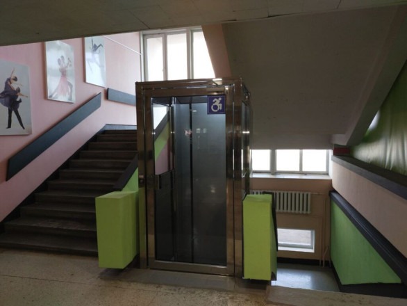 Укриття відповідає нормам і стандартам фізичної безбар’єрності. Тут обладнали пандус та замінили вхідні двері, аби людина на візочку могли швидко дістатися ліфта, який спустить їх до укриття.