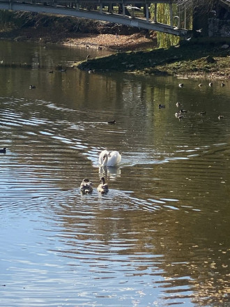 Лебеді у парку «Дубовий гай» у Запоріжжі. Facebook/Ірина Єгорова