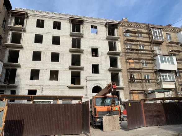 У відбудованій частині будинку, у квартирах з 1 по 3 поверх, підрядник виконав стяжку полу, триває етап штукатурки стін. Після цього встановлять вікна та перейдуть до ремонту у квартирах: проклейки шпалер, вкладання кахлю, ламінату, встановлення натяжних стель і нової сантехніки.