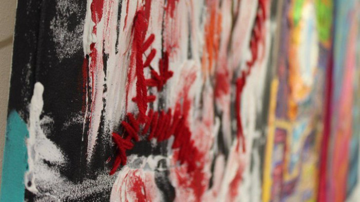 Картина «Війна» має елементи з ниток червоного кольору. Суспільне Запоріжжя