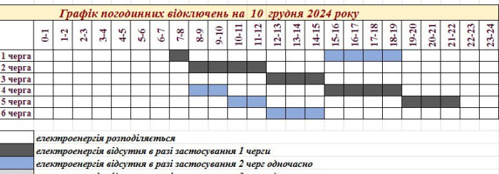У вівторок, 10 грудня, у Запоріжжі та Запорізькому районі планують вводити графіки погодинних відключень електроенергії.