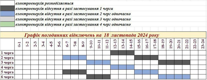 У понеділок, 18 листопада, у Запоріжжі та Запорізькому районі планують вводити графіки погодинних відключень електроенергії.