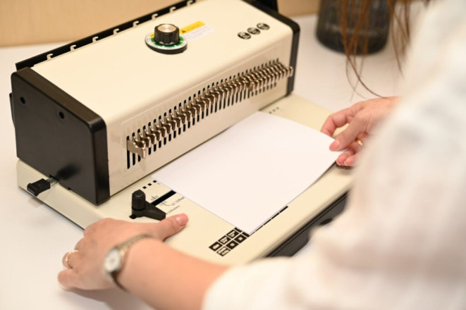 Кошти на обладнання Олена отримала в кінці серпня і використала їх на придбання лазерного принтера, який дозволяє швидко друкувати великі обсяги продукції (наприклад, блокноти за годину), а також створювати позолочені сертифікати. Додатково підприємниця купила станок для створення згинів для журналів, каталогів, а також перфорації квитків, потужний степлер, діркопробивач, заокруглювач кутів, менший різак (під формат А3), а також термобіндер для склеювання книг та каталогів (до 200 аркушів) та розхідні матеріали.