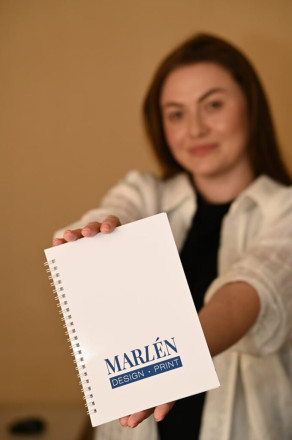 «Моє перше замовлення на друк було від клієнтки, для якої я зробила макет візитки. Вона одразу запитала, чи можу надрукувати. Я відповіла, що поки ні, але, можливо, скоро зможу. Тоді вона сказала: «Добре, я почекаю, і замовлю друк у вас». Так воно і вийшло: першими були візитки та блокнот, які я створила і відправила їй», – згадує Олена.