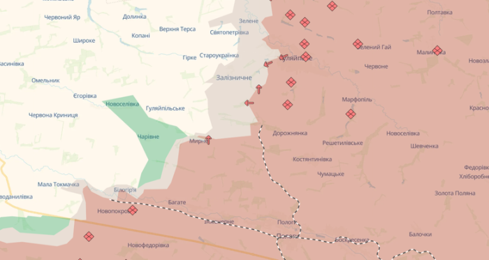 «Мапу оновлено. Ворог просунувся поблизу Олександрограда та Гуляйполя», — йдеться у повідомленні.