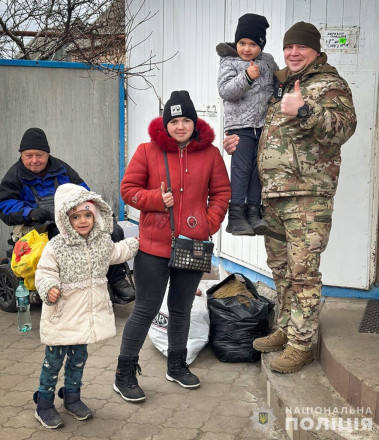Місцевий поліцейський офіцер громади допоміг родині евакуюватися у передмістя Запоріжжя, де вони мешкатимуть в родичів.