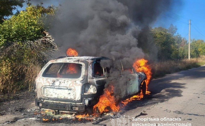 Сьогодні, 7 жовтня, у Гуляйполі ворожий fpv-дрон ударив по припаркованому автомобілю. Машина згоріла. Люди не постраждали.