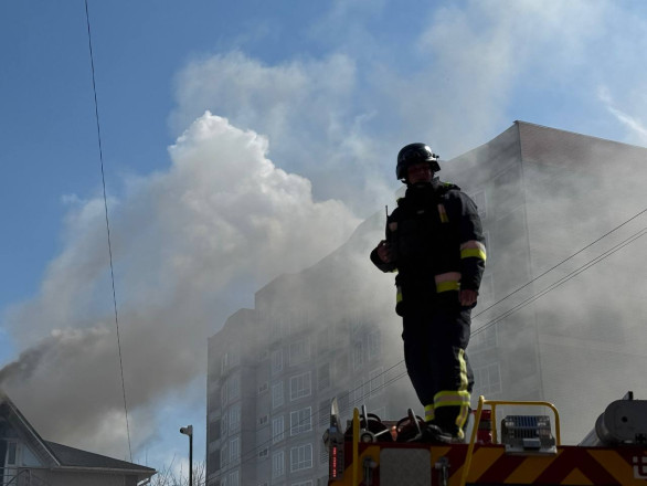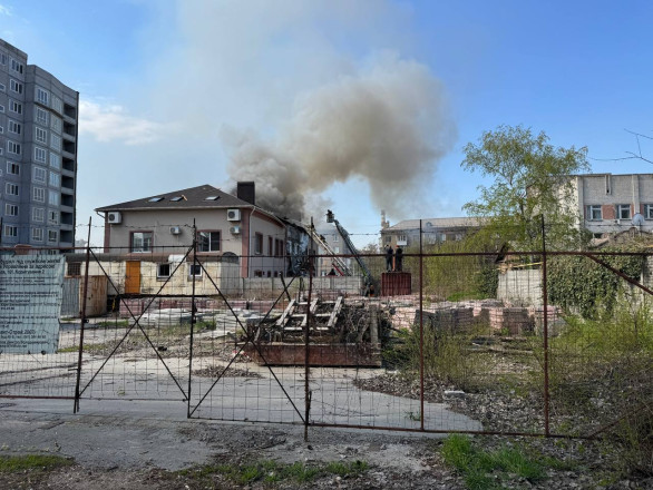 Рятувальники ліквідовують пожежу на даху офісної будівлі, 13 квітня 2026 року. Суспільне Запоріжжя