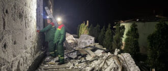 На місці ворожого удару працюють аварійні та комунальні служби: закривають вибиті вікна плитами ОСБ, прибирають уламки та сміття. Також допомогу жителям надають поліцейські, фахівці райадміністрації, волонтери.