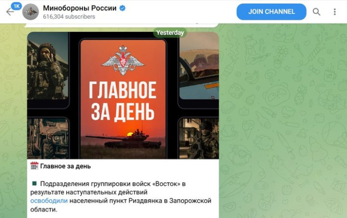 Допис у Телеграм-каналі щодо захоплення Різдвянки від 24.02.2026. Пропогандистський Телеграм-канал «Мінооборони РФ»"Бої зараз точаться східніше Добропілля за 5-7 км від цього населеного пункту…. Сили оборони України знищили ту групу, яка була в Тернуватому. За даними нашої розвідки противник намагався днями закинути інфільтраційну групу в район Косівцеве, Придорожнє, Різдвянка. Але цю групу ми також знищили".