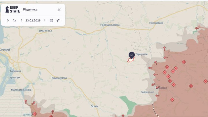 Карта бойових дій у Запорізькому регіоні, 23 лютого 2026 рік. DeepStateMap