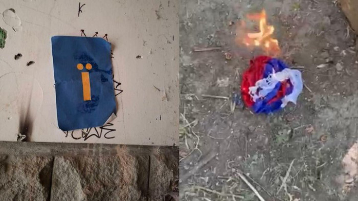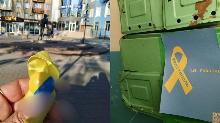 У тимчасово окупованому Мелітополі Запорізької області активісти руху спротиву пошили 50 жовтих стрічок та спалили прапор РФ.