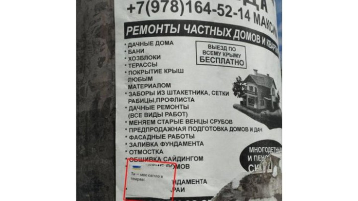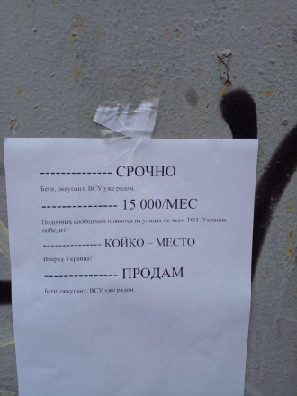По всьому місту активісти розмістили оголошення з прихованими повідомленнями для окупантів.