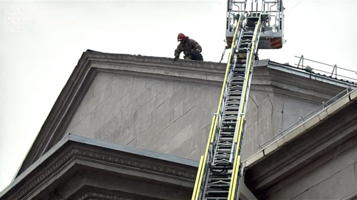 Крім того, вчора через штормовий вітер (17–22 м/с) було пошкоджено покрівлю запорізької обласної філармонії. Вітер зірвав конструкції даху, які звисали вниз, створюючи загрозу. Під час аварійно-рятувальних робіт у закладі йшов концерт. Надзвичайники оперативно зняли аварійні елементи покрівлі. На щастя, внаслідок події ніхто не постраждав.