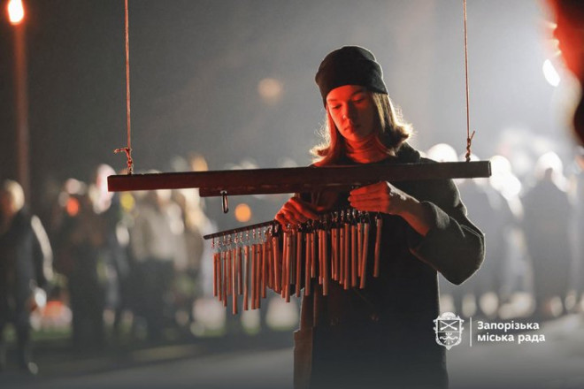 Присутні вшанували полеглих та до меморіальної інсталяції "Дерево пам’яті" додали ще 85 дзвіночків: 25 — від міста, 60 — від громад Запорізької області: