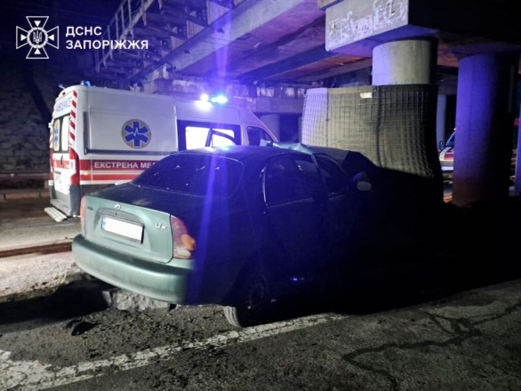 22 квітня о 01:41 в одному із районів Запоріжжя водій «Ланоса» не впорався з керуванням, після чого авто зіштовхнулося із бетонною опорою. Чоловіка затисло елементами понівеченої автівки.
