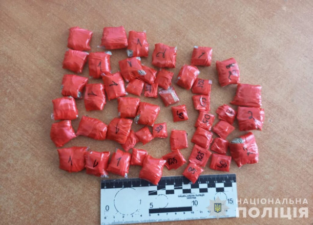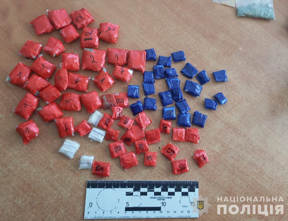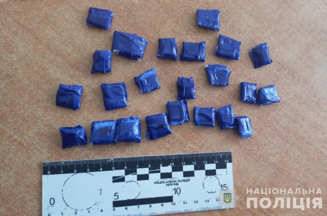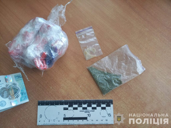 У штанах чоловіка знайшли поліетиленовий пакет із понад 70 згортками різних кольорів (попередньо — метамфетамін та канабіс). Все направили на експертизу.