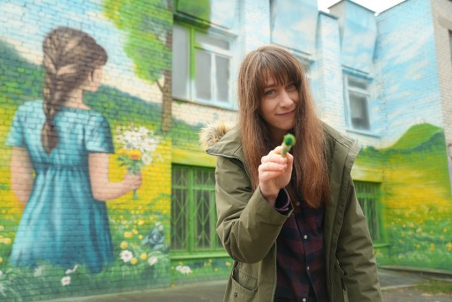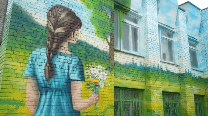 У Запоріжжі на фасаді коледжу "Моторобудівник" створили мурал про мінну безпеку. На ньому зображена дівчина на Хортиці, котра збирає квіти, а поряд, у траві, ховаються уламки боєприпасів.