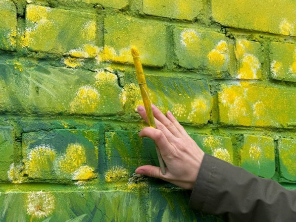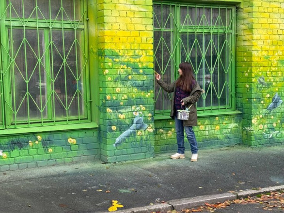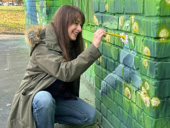 Людмила Кирилюк малює мурал. Суспільне Запоріжжя