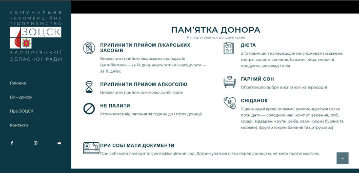 Пам’ятка для донора, розміщена на сайті ЗОЦСК. ЗОЦСК