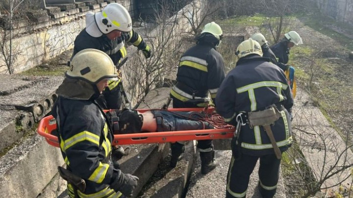 Рятувальники допомагають чоловікові, який упав в яму. ГУ ДСНС в Запорізькій області