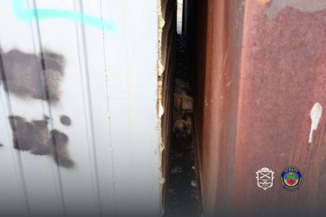 У Запоріжжі рятувальники КСВАРС дістали собаку, який застряг між гаражами й не міг самостійно вибратися. Тварина не постраждала.