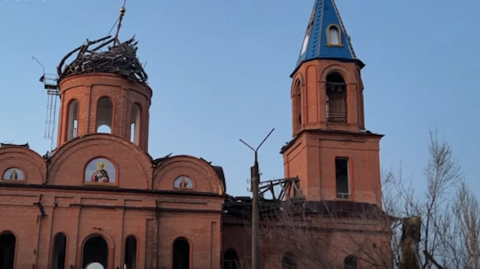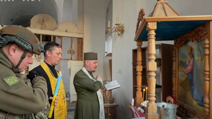 Великодня служба в зруйнованій церкві в Оріхові, квітеь 2026. 65 окрема механізована бригада ЗСУ