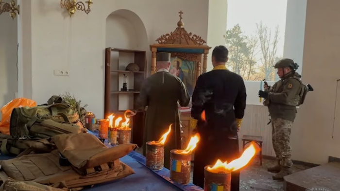 Великодня служба в зруйнованій церкві в Оріхові, квітень 2026. 65 окрема механізована бригада ЗСУ