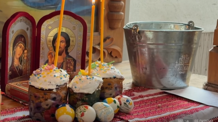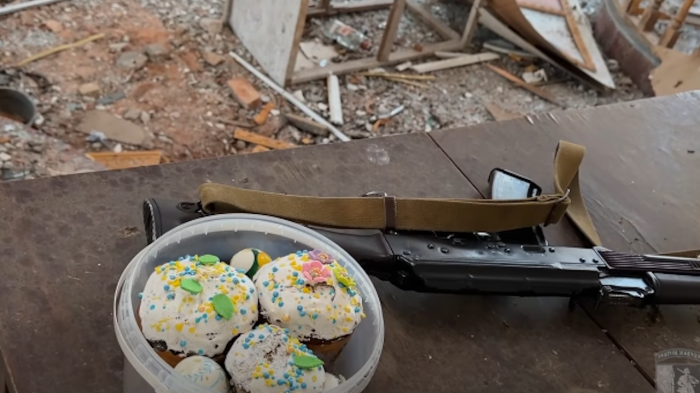 У зруйнованому храмі у прифронтовому Оріхові Запорізької області, що за кілька кілометрів від фронту, капелани 65-ї бригади "Великий Луг" провели великодню службу та освятили паски.