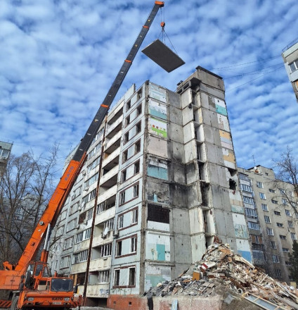 При відновленні житлового будинку застосовується комплексний підхід. Так, після завершення демонтажних робіт проведуть роботи з відновлення (будівництва) під’їзду, ремонту квартир та сходових клітин, ремонту шахти ліфта та встановлення ліфтового обладнання, влаштування інженерних мереж, ремонту покрівлі, утеплення фасаду та благоустрою території.